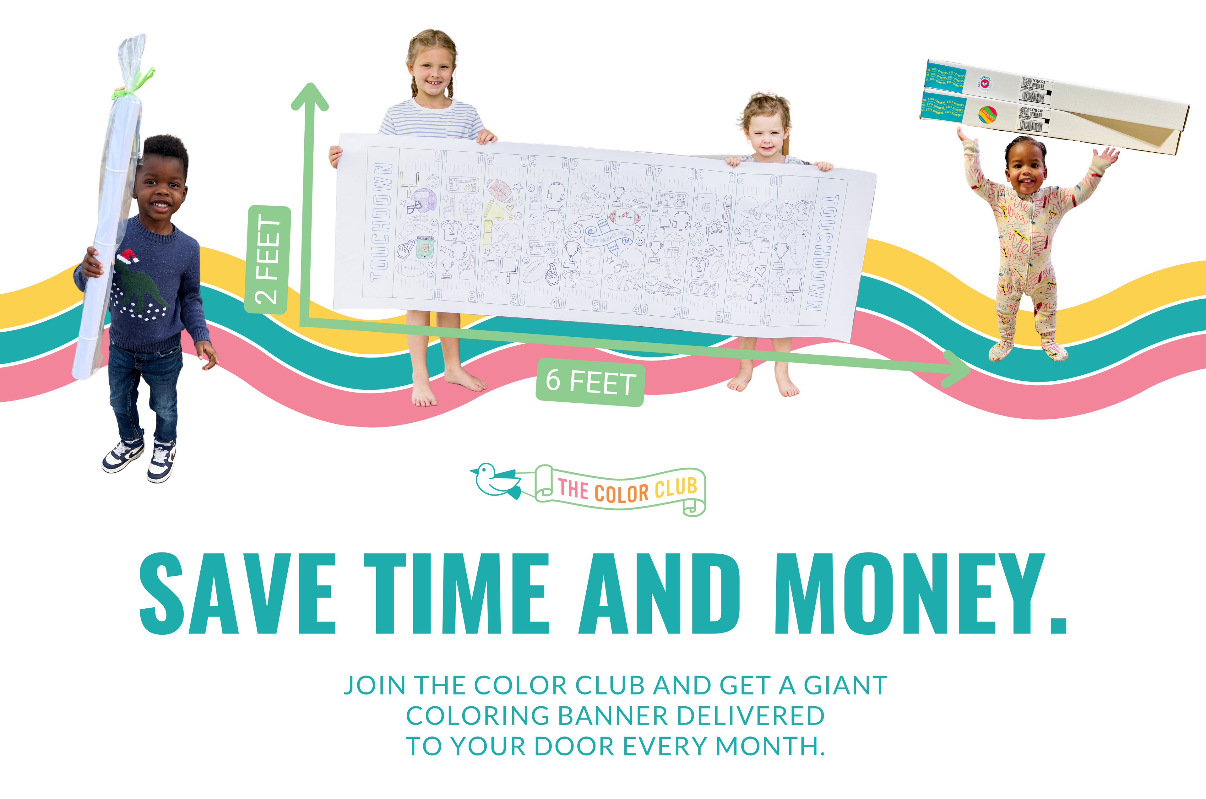 As a mom myself, I know I’d do just about anything to make life a little easier. I’m always looking for an activity that I feel good about and an activity that will entertain my kids. The problem is...it's hard to find something that engages my child's brain enough to keep them focused for more than 10 minutes! Sure, it's easy (and sometimes necessary) to plop them in front of a screen, but after a while I feel the ultimate mom-guilt. I believe screen free fun is here to stay...and I'm not the only one! This is why I have sold over 13,000 giant 2ft x 6ft coloring banners wrapped with crayons attached and helped 3,600+ moms have a back-pocket activity all her kids love and can enjoy together. When you join the Color Club - being a cool mom could not be easier! Sit back, relax, and get ready to unroll the fun every single month!